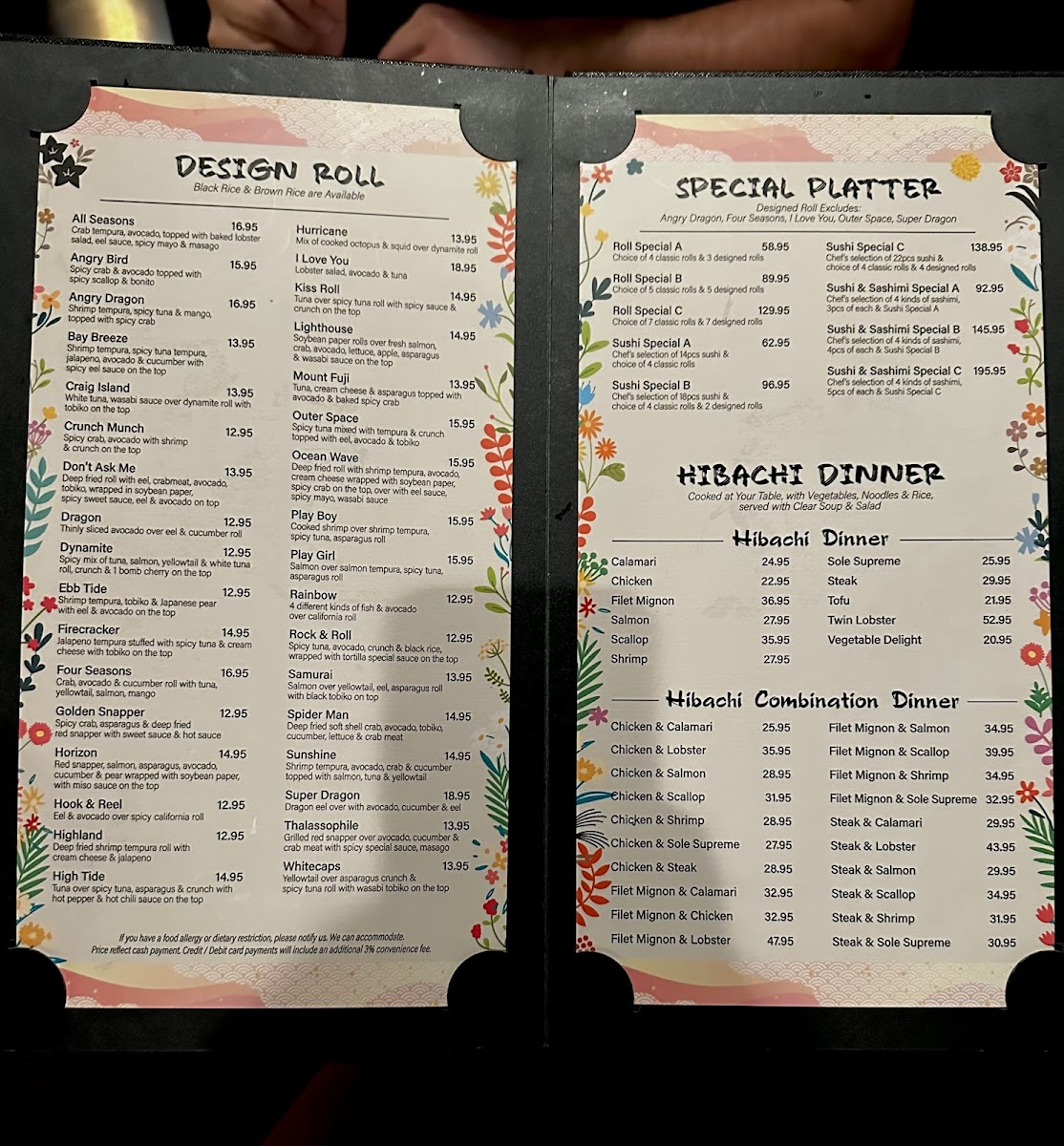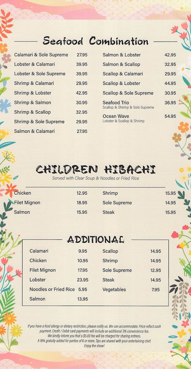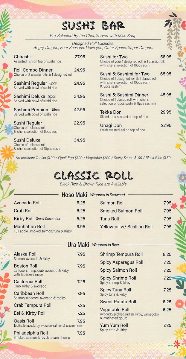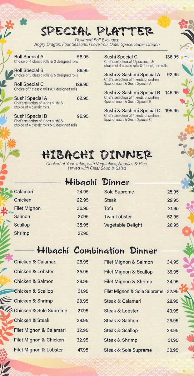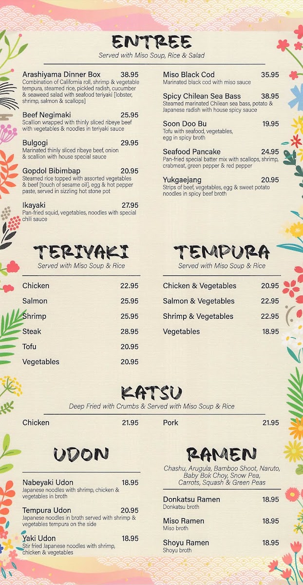 Arashiyama Japanese Sushi & Steakhouse Menu
